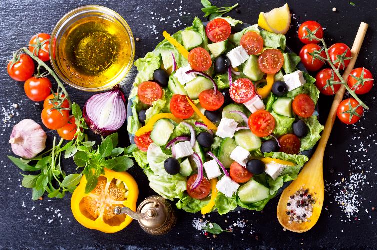 La cucina greca trae molte delle sue caratteristiche dalla conformazione geografica della penisola e dal suo clima mediterraneo.